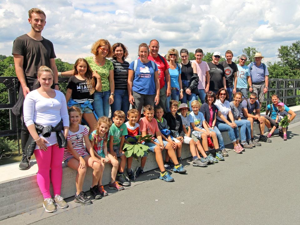 Um uns auch einmal im „Sommeroutfit“ zu sehen, gab es am vergangenen Sonntag einen Familienausflug des Rennteams. Fast vollständig traf man sich in Maria Steinbach, schulterte die Rucksäcke und marschierte Richtung Iller. Am Ortsende konnten wir uns bei einem Stehempfang auf der Terrasse bei Elisabeth nochmals bei „sauguatem“ Most und Sprudel stärken, bevor die restliche Etappe bis zu Fischer’s Fährhafen in Angriff genommen wurde. Nach zweifachem Übersetzen, hier durften sich auch die Jüngsten am Ruder versuchen, landete man dann bei Fam. Fischer an. Hier gab es zur Stärkung wieder diverse flüssige Nahrung, bevor wir uns durch den Wagsberger Flohmarkt schlängelten. Nachdem doch manche durch die Verkaufsstände schwer abgelenkt wurden, wurden doch alle wieder gefunden. Jetzt ging es in direkter Linie nach Illerbeuren, wo wir schon sehnlichst von den Bedienungen, die unsere reservierten Plätze schwer verteidigen mussten, zum Mittagstisch erwartet wurden. Nach einer ausgiebigen Pause ging es dann über die sanierte ehemalige Eisenbahnbrücke und durch Wald und Wiesen zurück nach Maria Steinbach. Ein herzliches „Danke schön“ noch an die diesjährigen Organisatoren und Spender Gabi und Susanne.